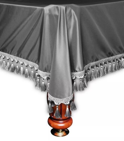 Одним из наших самых популярных товаров является чехол для бильярдного стола. Такой чехол призван защитить бильярдный стол от любого внешнего воздействия, от пыли и влаги. Данный чехол предназначен для стола размером в восемь футов, изготовлен он из шелка без влагостойкой пропитки, а на лузах нет резинки, тем не менее чехол прекрасно сидит на бильярдном столе. Это достаточно дорогой вариант, который подойдёт для домашнего использования или элитного бильярдного клуба или ресторана. Если же у вас недорогой и простой бильярдный клуб, то стоит выбрать варианты попроще и дешевле, они будут смотреться не хуже. Однако, функциональных отличий между дорогими и дешёвыми вариантами нет, у всех них одна функция - защита бильярдного стола.