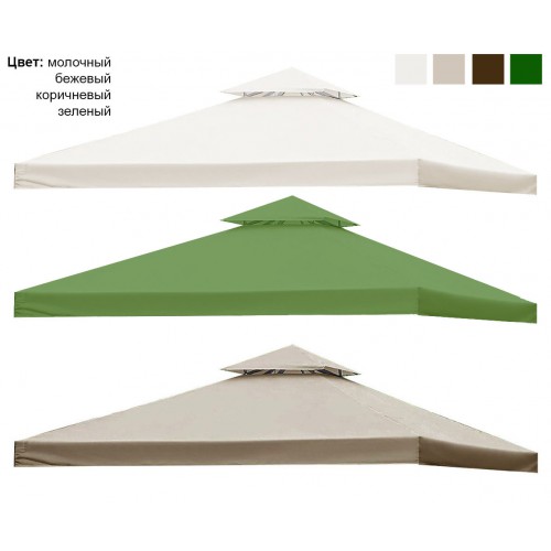 Данная крыша для шатра или беседки может иметь бежевый, молочный, коричневый, а также зелёный цвет. На данной крыше есть специальный клапан, предназначенный для вентиляции. Изготовлена такая крыша из Оксфорда. Это очень прочная и стойкая ткань, которая отлично драпируется. Изнутри она обрабатывается при помощи специальной пропитки, изготовленной из полиуретана, благодаря этому тент будет надёжно защищен от грязи, ветра и воды, а также любых других погодных явлений. Произведена данная продукция в России. При возникновении вопросов вы всегда можете обратиться к менеджерам для получения подробной консультации.